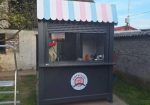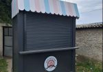 Na prodaju, kiosk/tezga dimenzije 2x1m i visine 260 cm. Pravljen za ulicnu prodaju krofnica, sladoleda i kokica, kiosk je nov, nikad nije koriscen, penel 5cm kontrukcija od gradjevinskog kontejnera, klizna vrata za prodaju, alu roletna, struja uradjena za velike potrosace 12 uticnica i svaka ima svoj osigurac, poseduje i atest za struju.